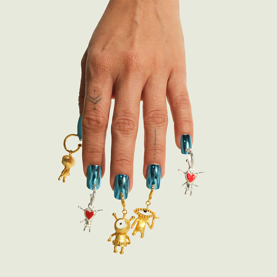 La mayoría de nuestras joyas están elaboradas en bronce con baño en oro o en plata de 24kt. Sin embargo, también manejamos algunos productos en plata 925. Para conocer en qué material está elaborada una pieza, te invitamos a leer la descripción del producto.